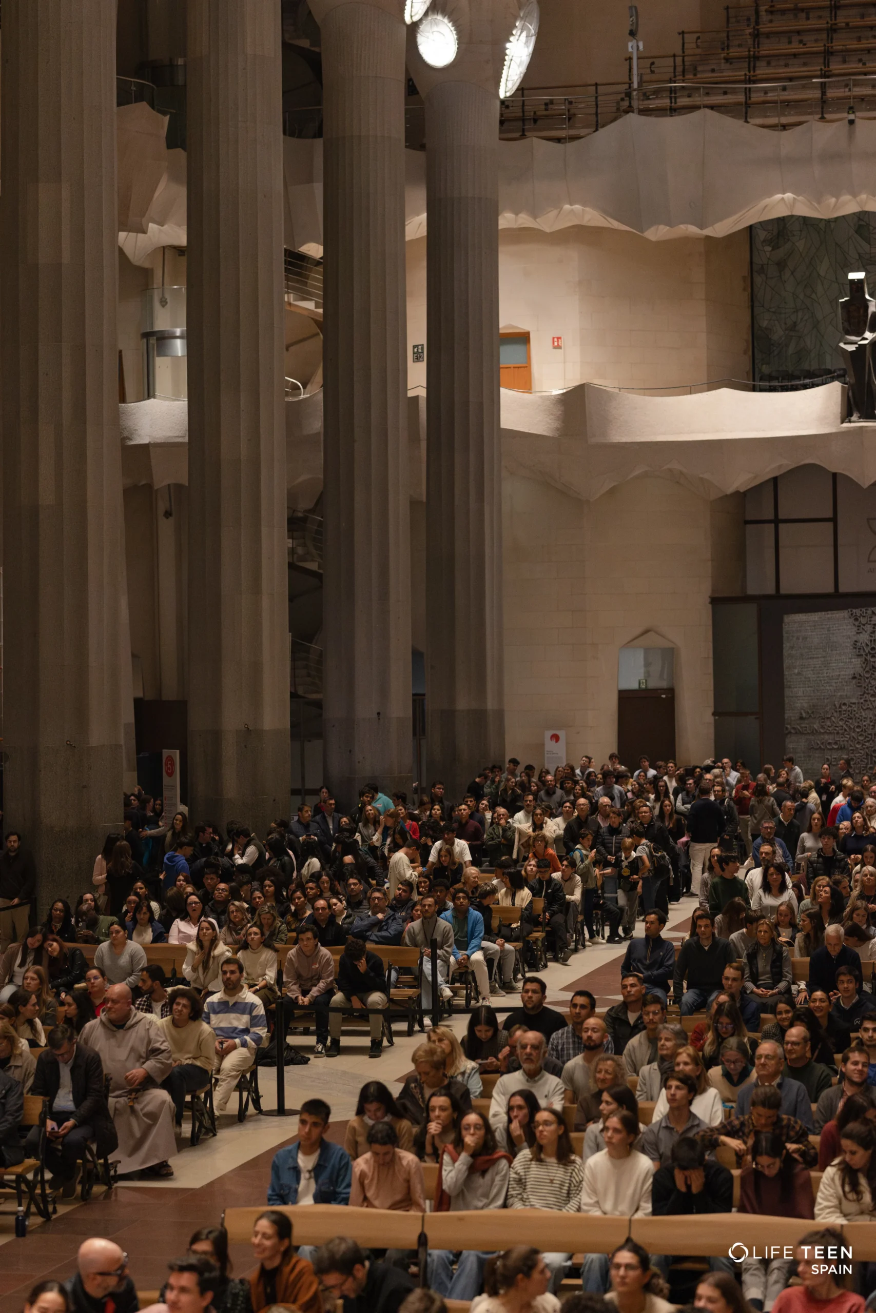 La Basílica de la Sagrada Familia se llenó este viernes 15 de noviembre con la presencia de más de 1.700 jóvenesprocedentes de toda España y varios países europeos para participar en el XLT, una adoración eucarística organizada por Life Teen España en colaboración con las delegaciones de juventud de Barcelona y Terrassa. El encuentro, que culminó el 40.º aniversario de Life Teen, reunió a grupos de diócesis como Madrid, Burgos, Valencia, Santiago o San Sebastián, además de jóvenes de Holanda, Austria, Eslovenia y un grupo internacional de 50 peregrinos de Estados Unidos. La jornada comenzó con dinámicas de convivencia, seguida de una catequesis impartida por Randy Raus, presidente de Life Teen Internacional, y Ali Blázquez, responsable del Life Teen Summer Camp en España.